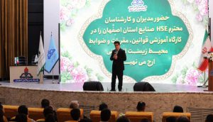 سالن اجتماعات شهرک شهید محمد منتظری پالایشگاه اصفهان در هفته محیط زیست میزبان همایش آموزشی، قوانین، مقررات و ضوابط محیط ‌زیست بود.